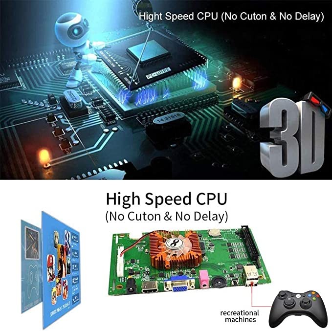 • 【New Vision 1280 x 720 Full HD】This arcade game console can be connected to TV, computer, game console, projector to play games. High-definition graphics and excellent sound quality, good game control experience and stable performance. Easy to use, plug and play, with English manual. Top brand chips in gaming solutions, smooth picture display;