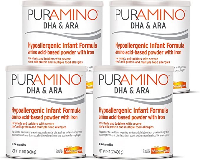 MeadJohnson Enfamil Puramino Hypoallergenic Infant & Toddler Milk Powder - Amino Acids For Those With Severe Food Sensitivity - Can, 14.1oz, 400g (Pack of 4)