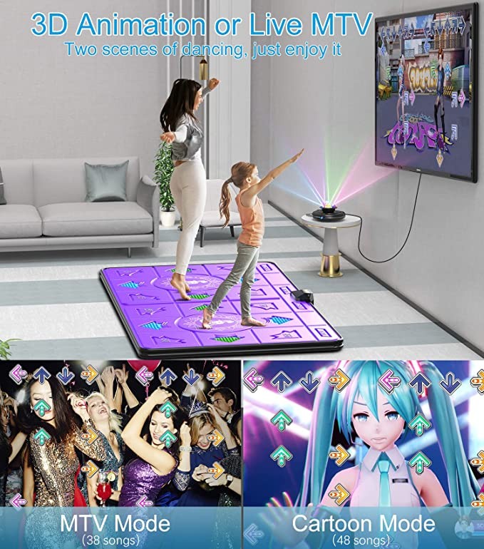• 【MTV & Cartoon Dance Mode】Two fun dance challenge modes. MTV and Cartoon Mode cater to adults and children's entertainment needs, respectively. The MTV mode contains 38 global hits, and the cartoon 3D mode contains 48 hits. There are a total of 86 songs to choose from, which can meet the needs of different groups of people. This is the best choice for family gatherings and parties.