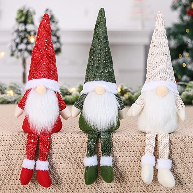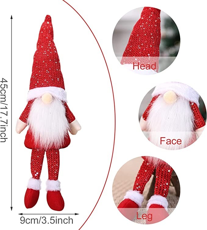 QIFU Gonks Christmas Decorations, 3Pcs Christmas Gnome, 45CM Tall Handmade Swedish Tomte Gnomes Plush, Xmas Gonks for Home Office Table Decoration Christmas Tree Hanging Decoration Children Xmas Gift