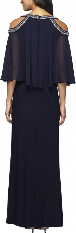 Cold-shoulder popover long dress