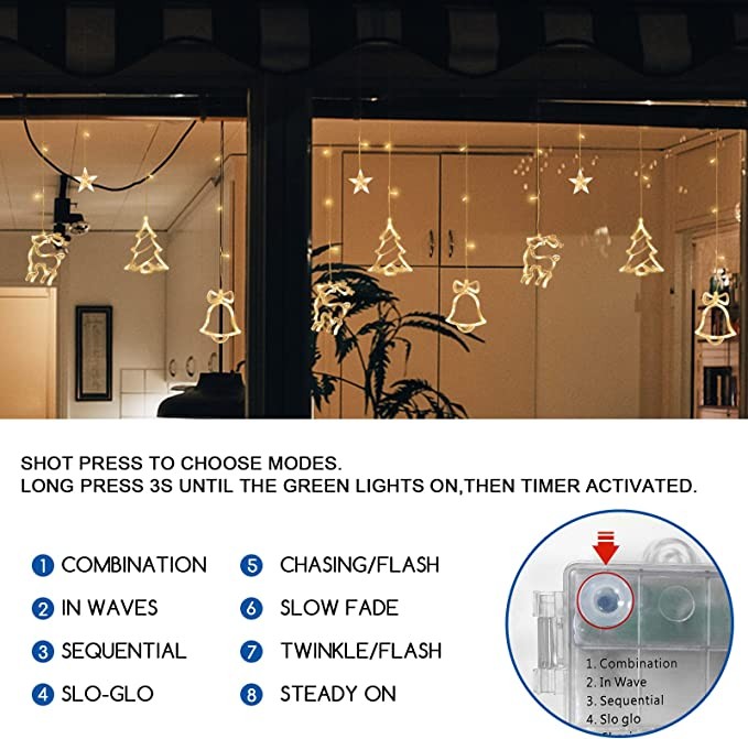 Jsdoin LED String Light Christmas Curtain Light 3.5M Waterproof Fairy Light String Christmas Window Lights 8 Modes Wedding Party Garden Bedroom Decoration USB+Battery Box